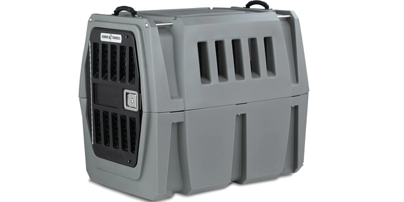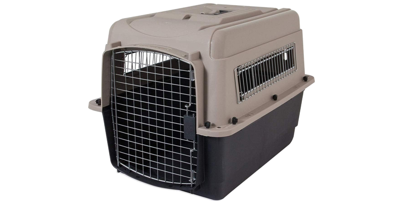 For less rugged needs, PetMate makes a solid crate. This dog crate meets most airline cargo specifications. It is made with heavy duty recycled plastic material and features an easy-open front latch to quickly access pets.