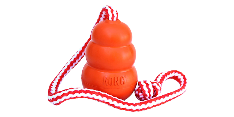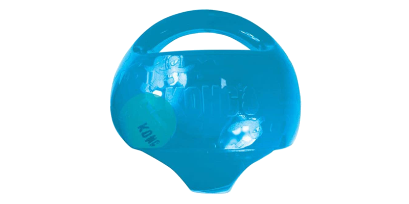 The juggling of the internal tennis ball in this toy plus the integrated handle make this a truly fun dog toy. They’ll carry it around, toss and shake it. A Kong product, it’ll take the abuse.