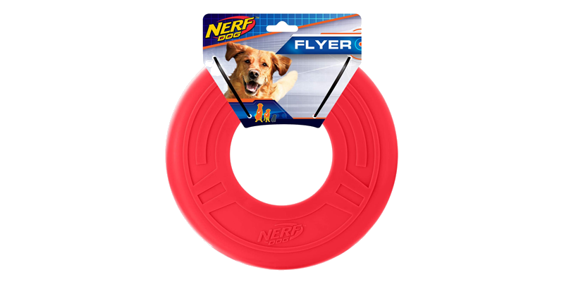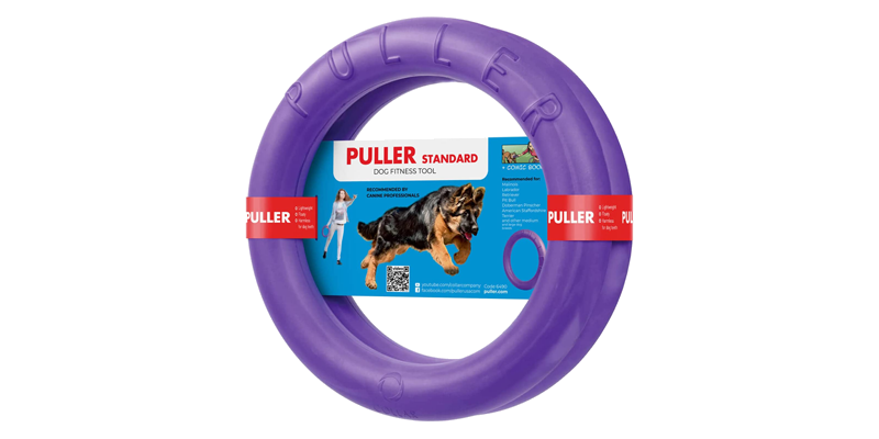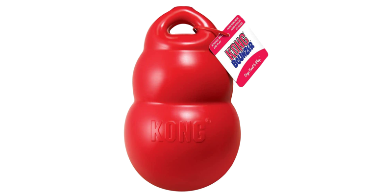 Like the Bounzer, this heavy duty toss and tug toy can be retrieved and carried all over. The handle makes it extra fun for dogs. This is a heavier, larger toy that will be more appealing to older dogs.