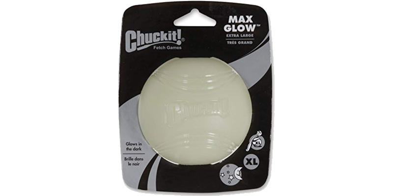 In the summer months, playing fetch outdoors at night is not only fun but keeps your pup cooler. The XL Max Glo ball by ChuckIt is highly visible and easily lite up in literally seconds by a flashlight. It loses glow after a bit, so using a flashlight means you have a light source right there to recharge it. Of course, any light source will do! The fun part is you see the ball bouncing in the air glowing as your dog retrieves it (but you often can’t see your dog). Totally funny.