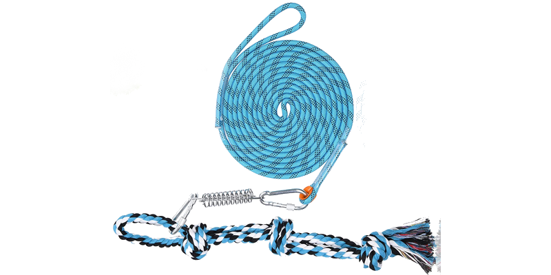 Finding a form of exercise play for your pup that they can do on their own is wonderful. This tug rope is sturdy, the spring makes tugging interesting and it’s very easy to put up. If you’ve got trees, it’s trivial. If you don’t, you may need to get creative to find a spot to toss the rope over and secure it.