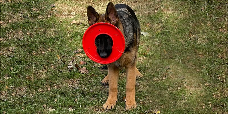 German Shepherd Dogs love to chase and these nice rings come in pairs, allowing you to teach them to retrieve. Toss one, hold the other until they bring the first one back and drop it, then toss the second. Dogs are much more inclined to release a toy if they understand that you’re not taking it away from them. These rings are easy on their mouths and teeth but that also means they can be easily chewed up. Make sure you put them away when the play is over.